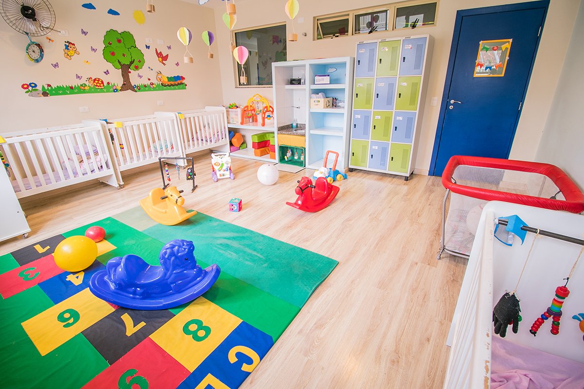 Área verde12PreviousNextSoláriosSalas com pias e bebedourosBanheiros e trocadoresRefeitórioParquinho internoSala de recreação12PreviousNextSala do bercário12PreviousNextSalão de eventos escolares