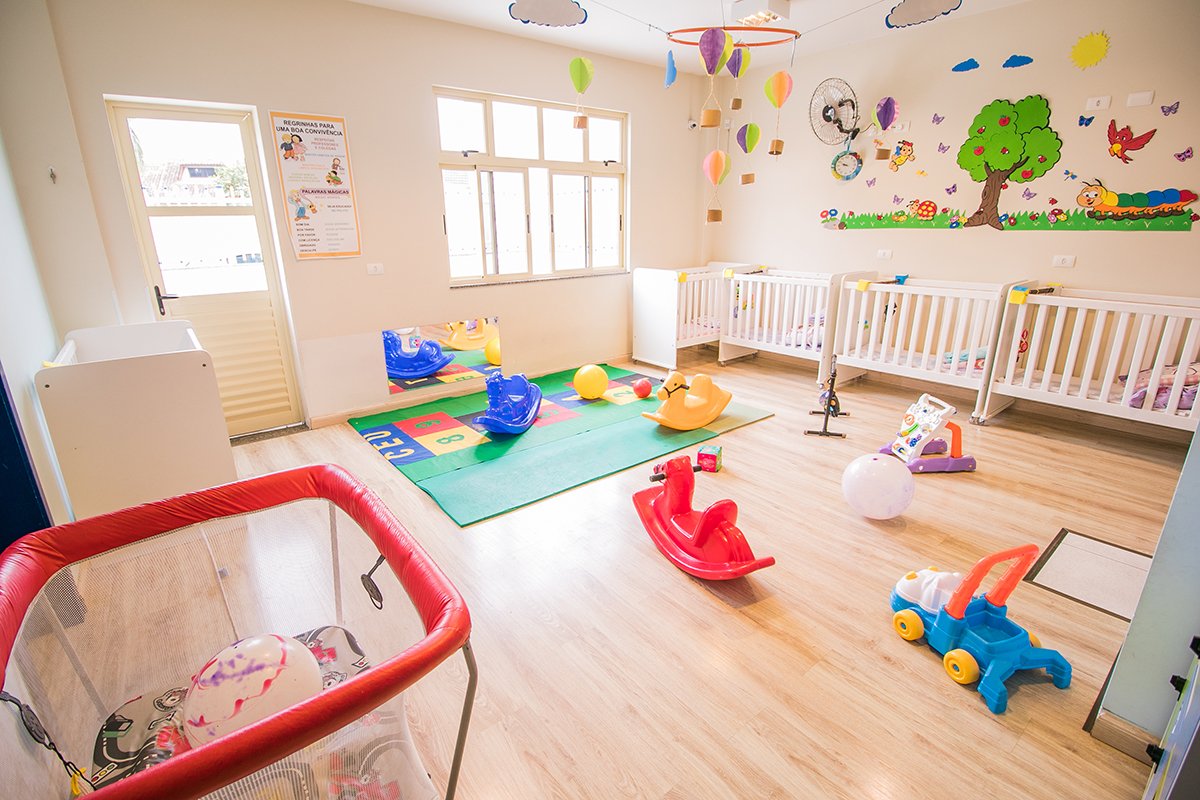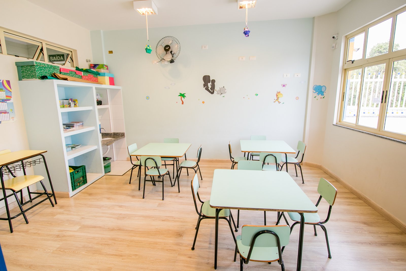 Área verde12PreviousNextSoláriosSalas com pias e bebedourosBanheiros e trocadoresRefeitórioParquinho internoSala de recreação12PreviousNextSala do bercário12PreviousNextSalão de eventos escolares